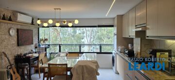 Belíssimo apto. com acabamento diferenciado em local excelente na Vila Andrade, condomínio de alto padrão com todas as facilidades e lazer, com 100m úteis, sala 2 ambientes com lareira, lavabo, 2 dorms. 1 suíte c/ closet e banheira, sistema multimídia para projeção, sacada com churrasqueira, cozinha americana, área de serviço completa e 3 vagas. Portaria eletrônica com controle de acesso 24hs., piscina, academia, salão de festas, sauna seca e ducha vertical